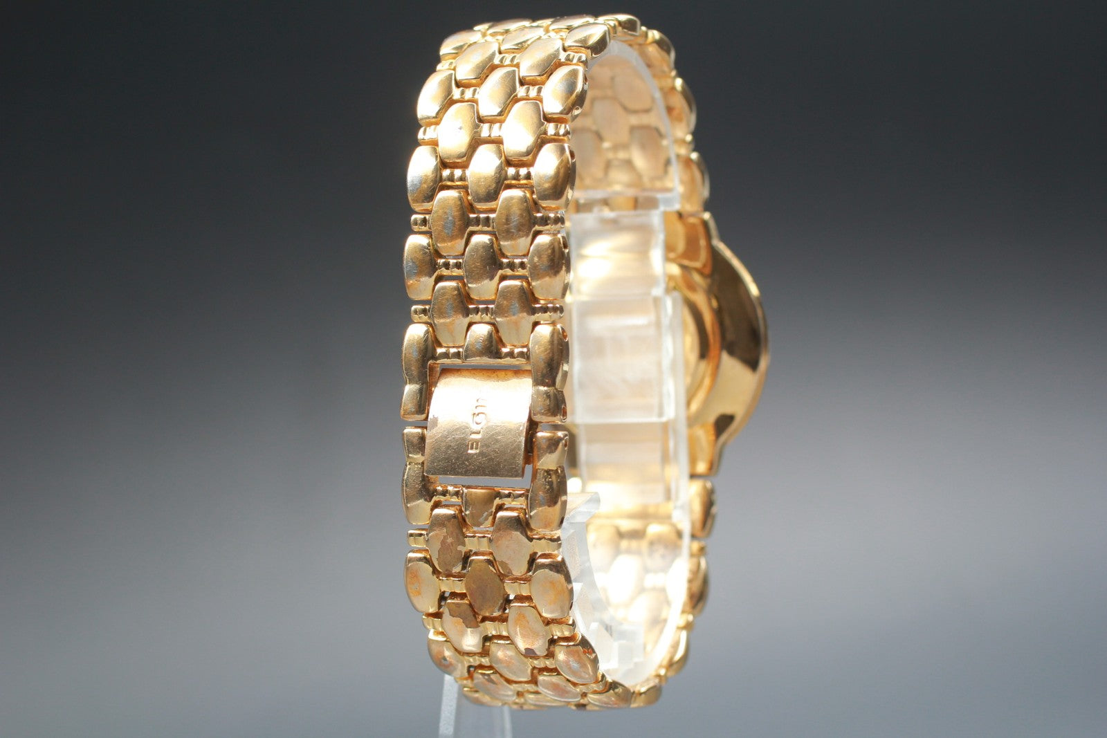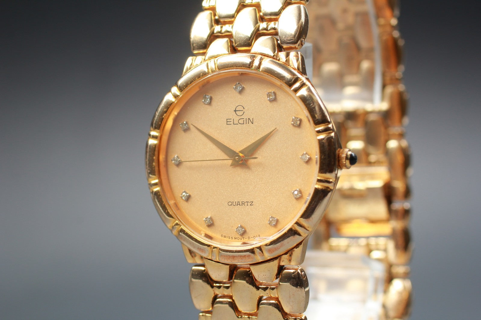 Exc+5 ELGIN FK294 Gold 12P Diamond Bracelet Quartz 31mm Men's Watch Swiss Made