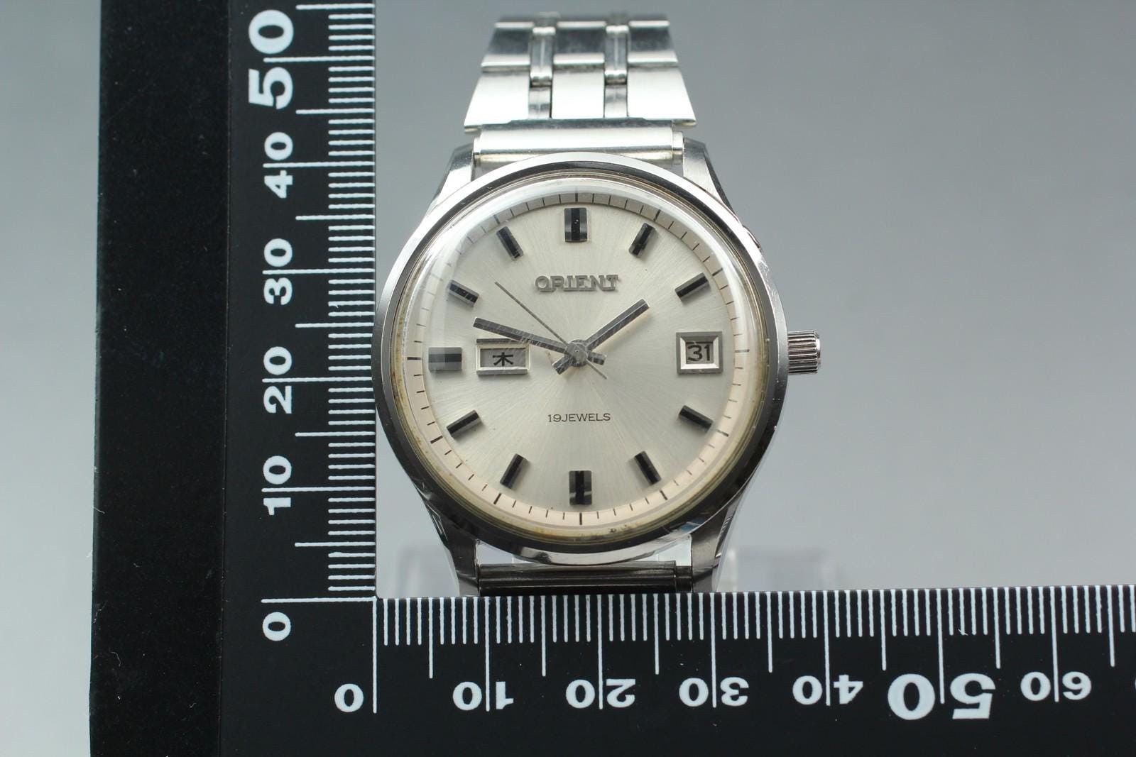 Exc+5 Orient 904531S Day Date Kanji 37mm 19J Manual Winding Men's Watch JAPAN