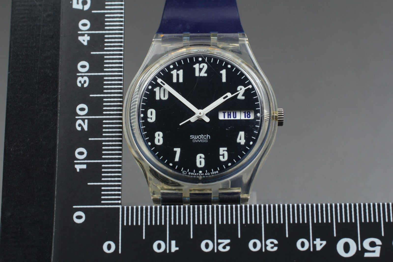 Exc+5 Swatch Blue Nite GK732 Date Date Black Quartz 34mm Men's Watch From JAPAN #16482