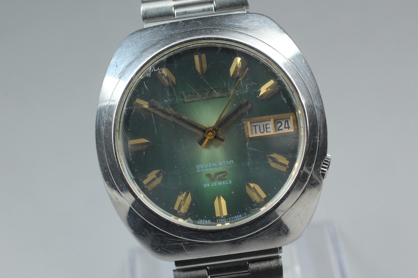 Vtg 1972 [Exc+4] Citizen Seven Star V2 7700-771556 Green JDM 38mm Mens Watch